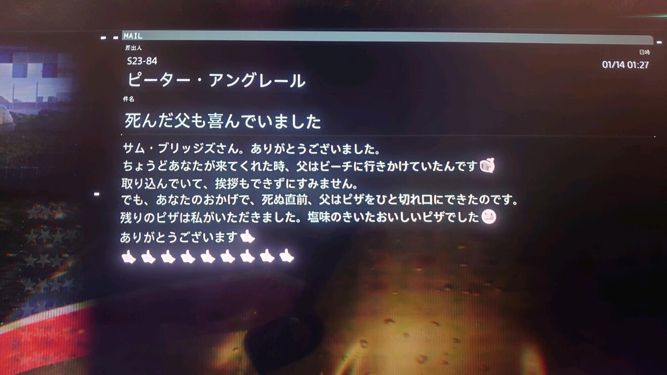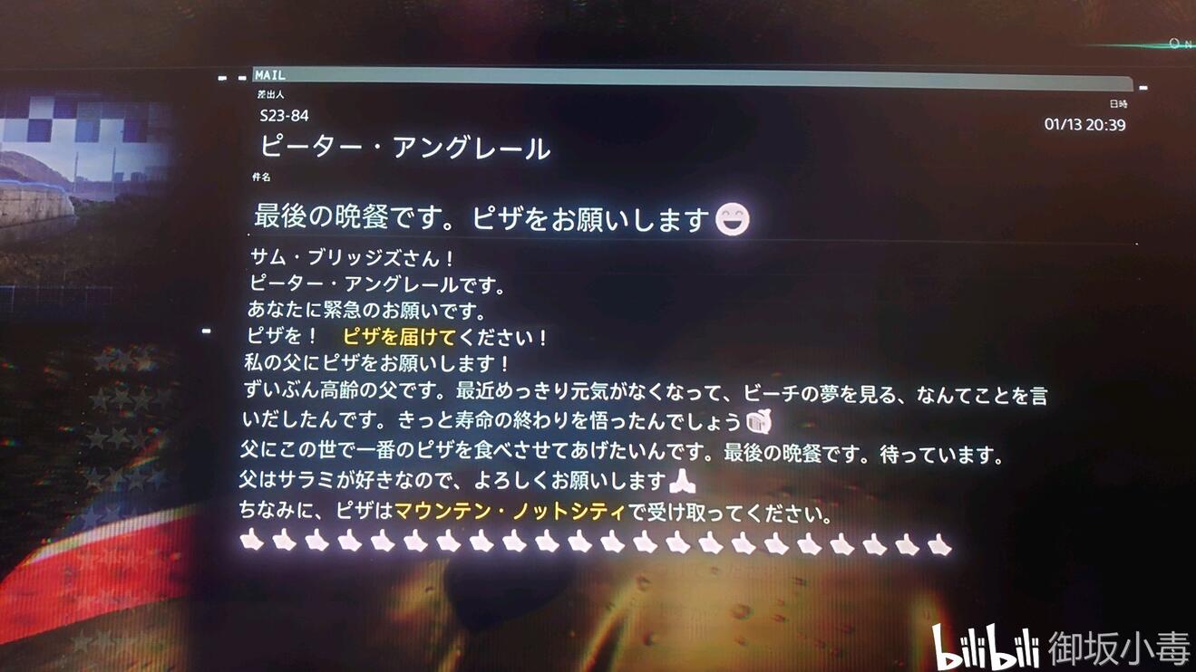 这封信发送过来的时候我并没有在意,甚至根本没有点开,后来接取任务也是刚好闲逛到K7,慢悠悠的把披萨送到,出门的时候又接到了信件,点开一看……